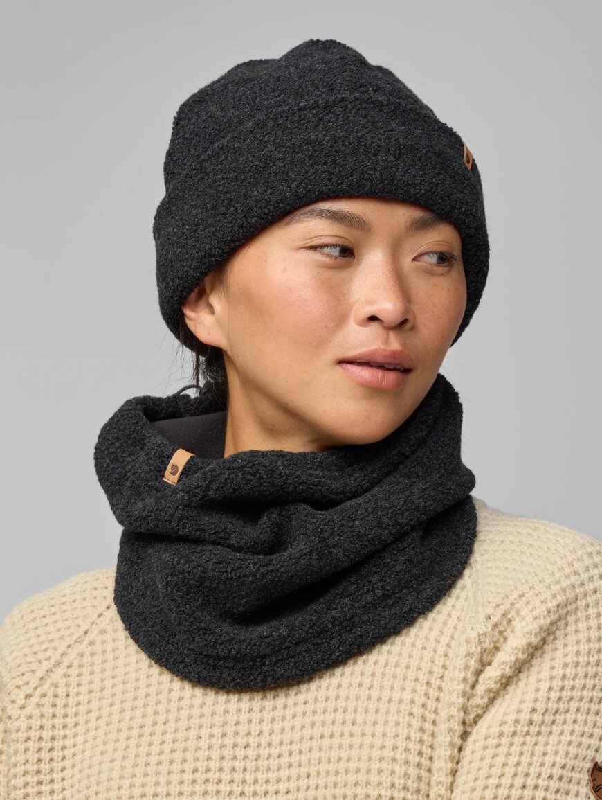 Баф имеет стильную рифленую фактуру и небольшой логотип Fjällräven. Верхняя часть регулируется с помощью эластичного шнурка, что позволяет плотно подогнать его под себя и надежно защититься от ветра.