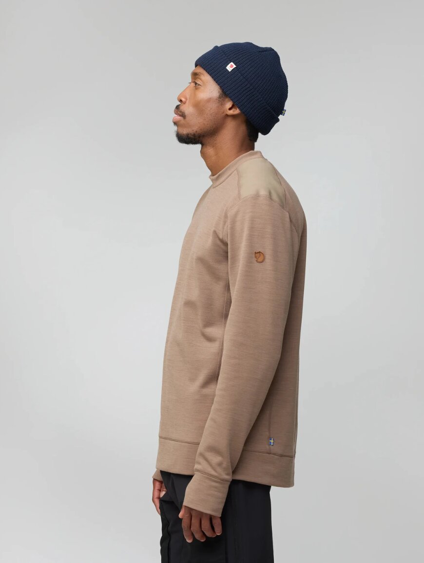 Keb Fleece Crew Neck M - это удобный и функциональный свитер из флиса, созданный для использования в течение всего года. Благодаря сочетанию шерсти, переработанного полиэстера и эластана он одновременно хорошо удерживает тепло, отводит влагу и сохраняет эластичность. Плечи усилены прочной тканью G-1000, которая защищает от износа при ношении рюкзака. Плоские швы снижают объем и не натирают, а удобные отверстия для больших пальцев в манжетах делают свитер еще более практичным. Это отличный вариант как легкий свитер в теплое время года или как утепляющий средний слой в холодную погоду.