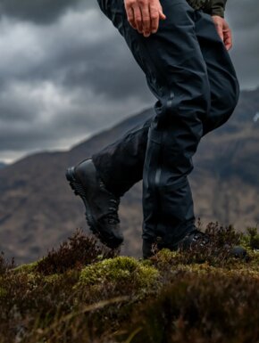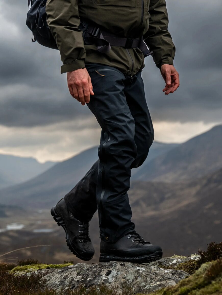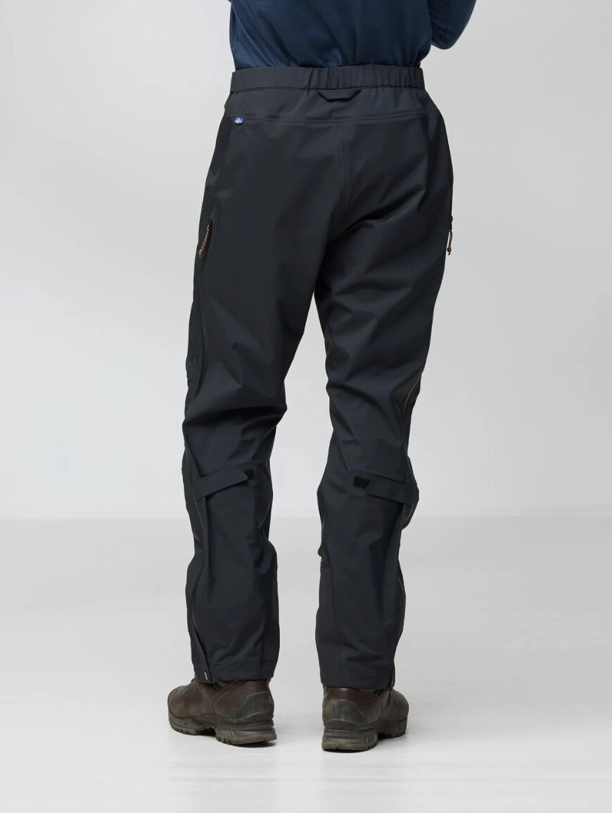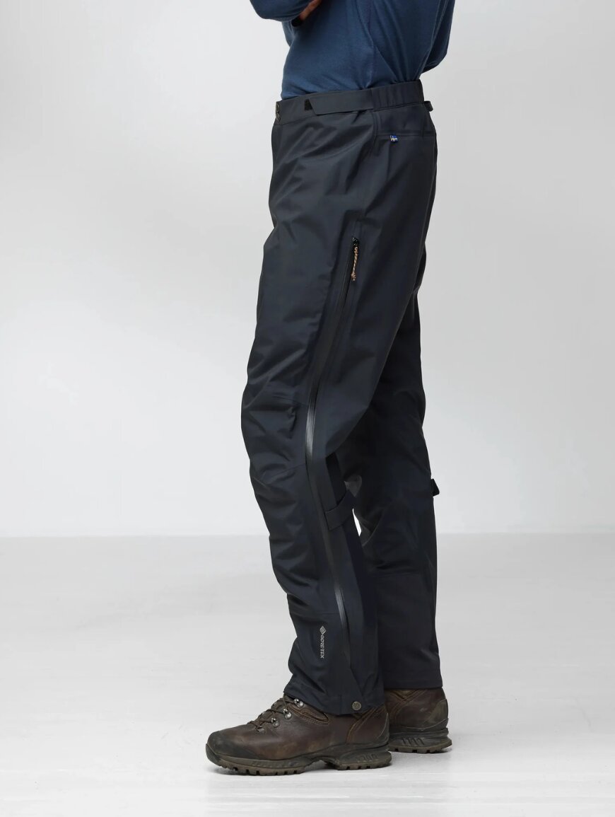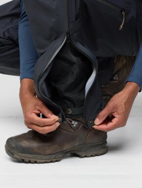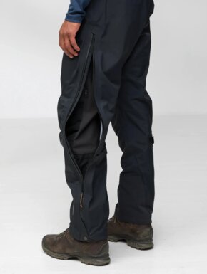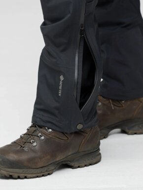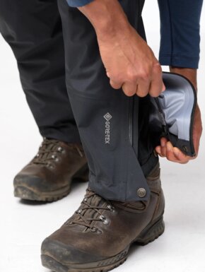 Благодаря продуманному крою брюки не сковывают движений и комфортно сидят поверх треккинговых брюк. Длинные двусторонние молнии по бокам позволяют быстро снимать или надевать брюки даже в ботинках, а также эффективно отводят лишнее тепло во время активного движения. Усиленные регулируемые манжеты снизу защищают от износа, а специальные крючки и петли позволяют надежно зафиксировать брюки поверх ботинок.