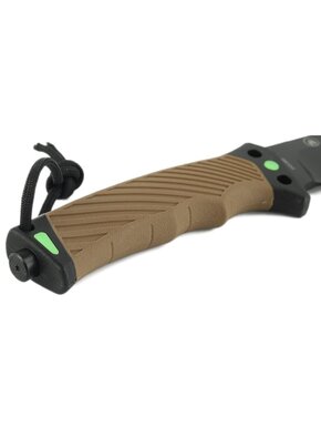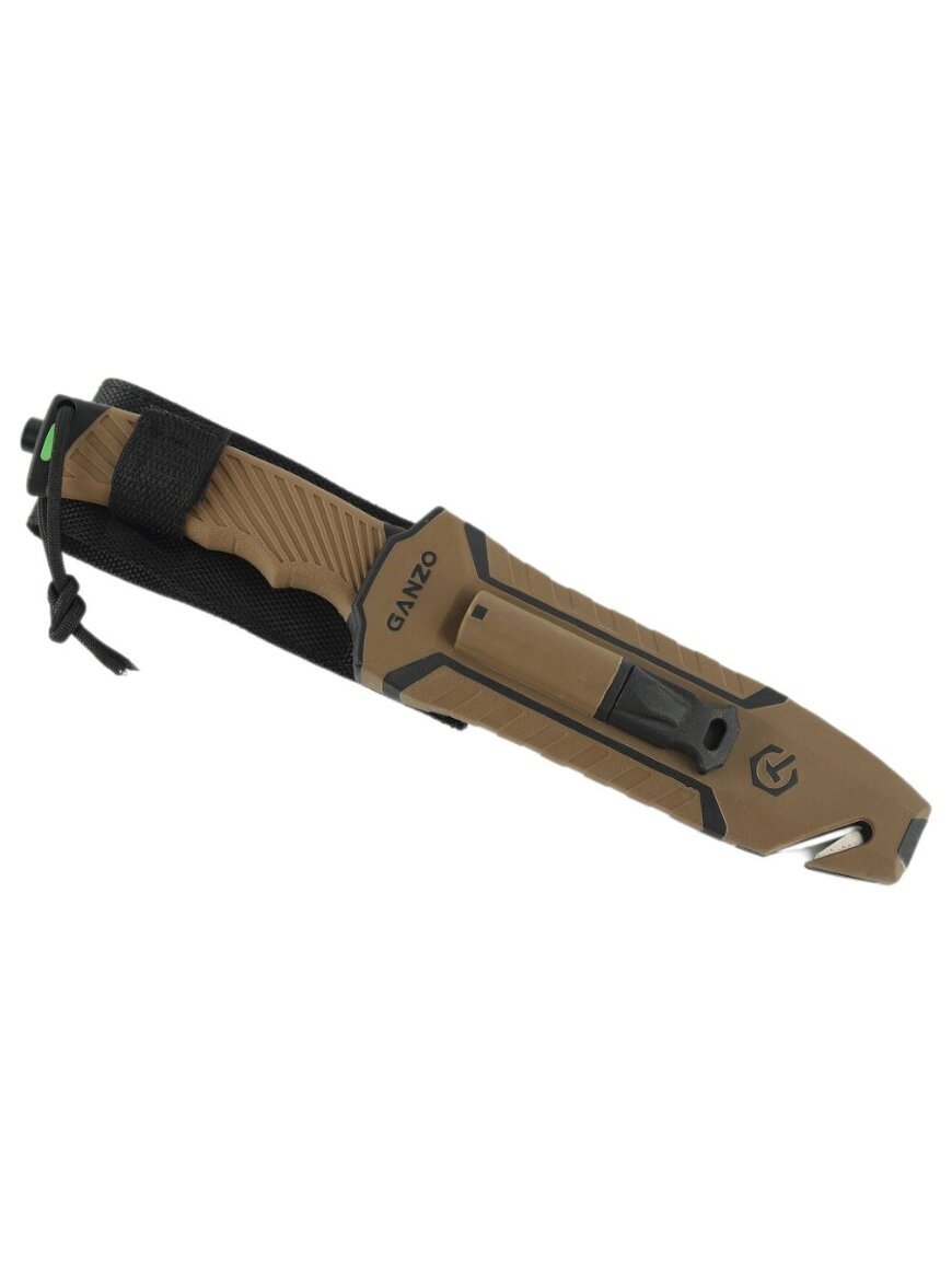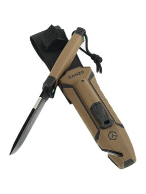 Поскольку нож создавался специально для нужд путешественников-экстремалов, производитель оснастил его эргономичной рукоятью, которая легко помещается в ладонь любого размера. Выемка для упора под палец делает хват более надежным и позволяет удерживать инструмент даже во влажной руке. Материал рукояти — ABS-пластик, который ценится в ножевой промышленности за ударопрочность и невосприимчивость к воздействию кислот, бензина и других химических веществ без потери свойств и цвета.