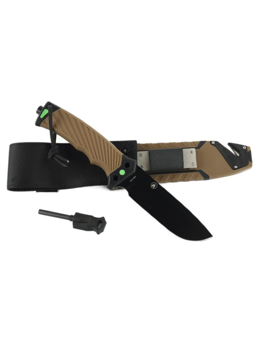 Нож выживальщика с фиксированным клинком, имеет усиленную конструкцию, который выдерживает экстремально высокие нагрузки. Клинок переносится и хранится в специальных ножнах, которые обладают рядом дополнительных функций.