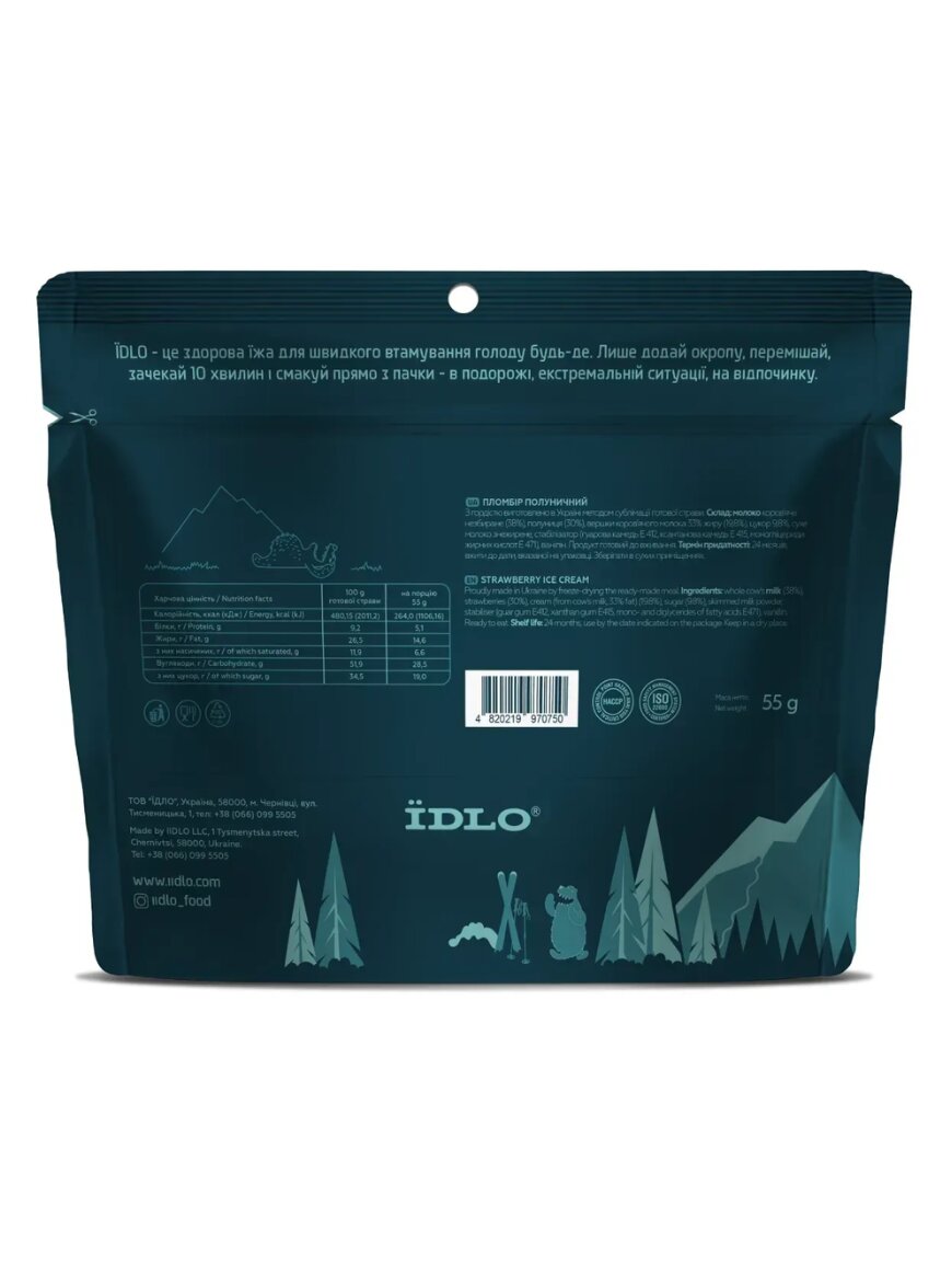 Состав: молоко коровье цельное (38%), клубника (30%), сливки коровьего молока 33% жира (19,8%), сахар (9,8%), сухое молоко обезжиренное, стабилизатор (гуаровая камедь Е 412, ксантановая камедь Е 415, моноглицерины жирных кислот Е 471), ванилин.