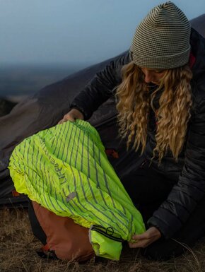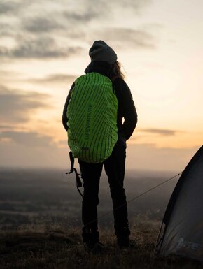 Чехол для надежной защиты рюкзака и снаряжения объемом 25-40 л от дождя и влаги во время походов, путешествий или повседневного использования. Изготовлен из прочной водонепроницаемой ткани и оснащен светоотражающим принтом, который повышает видимость в условиях слабой освещённости. Чехол крепится к лямкам рюкзака, что предотвращает его смещение при ходьбе. Регулируемый шнурок позволяет плотно зафиксировать чехол и обеспечивает надёжную посадку даже в ветреную погоду.