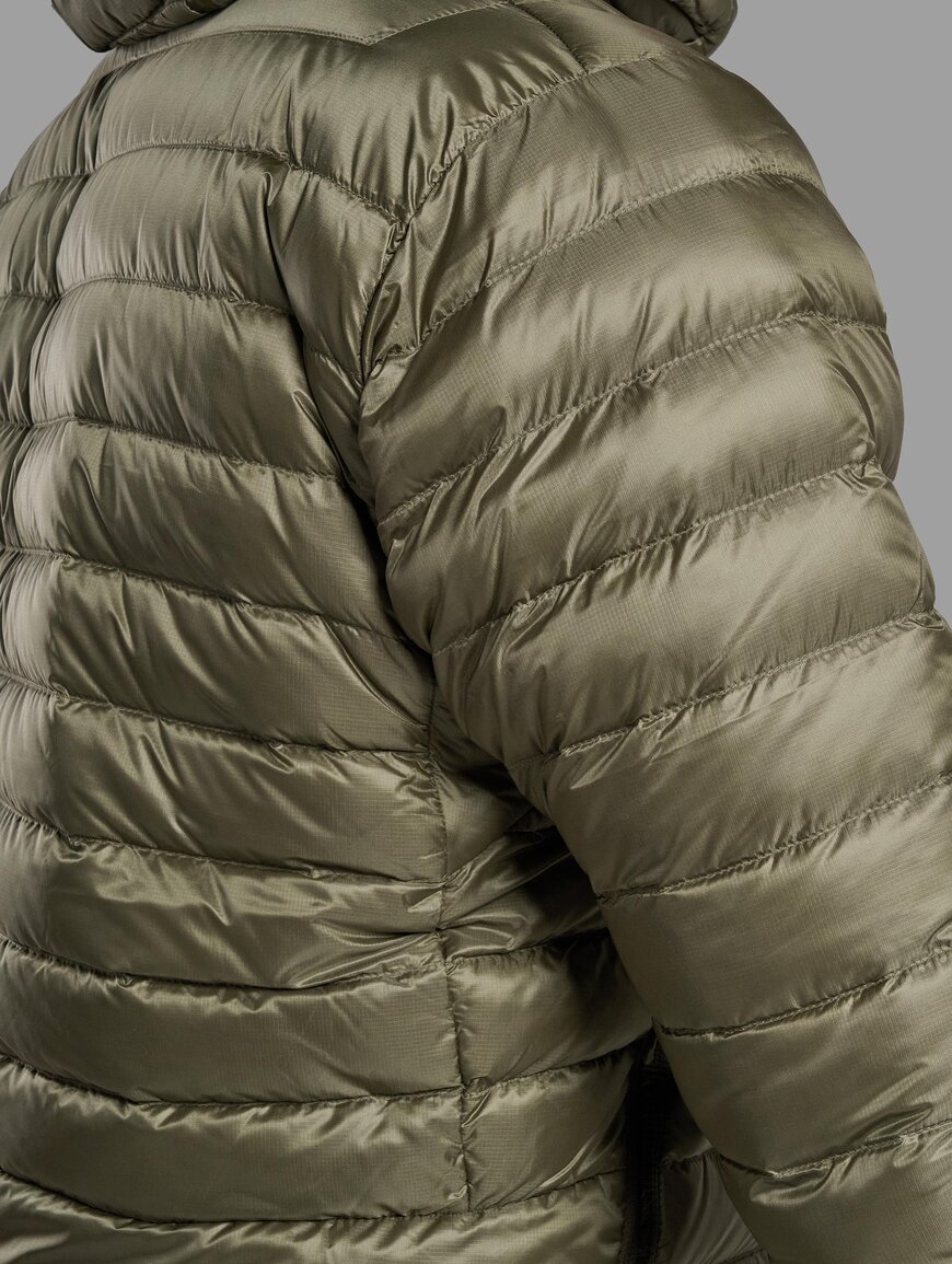 Внешний материал Pertex® Quantum из переработанного нейлона устойчив к износу и ветру. Наполнитель из пуха ExpeDRY 800 fill power обладает водоотталкивающим эффектом и сохраняет тепло даже во влажных условиях. Под руками расположены панели из синтетического утеплителя, которые помогают отводить влагу во время активного движения.