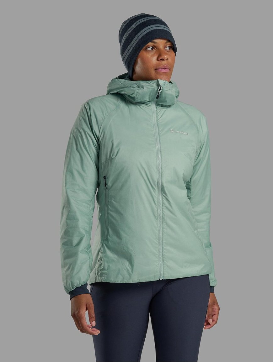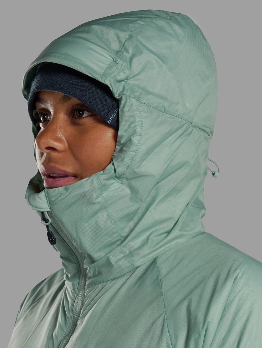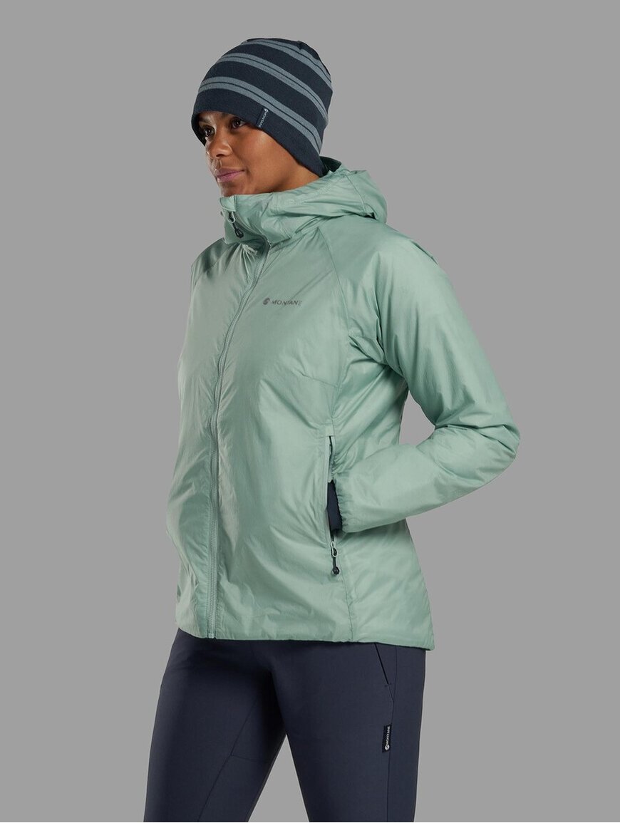 Легкая женская утепленная куртка Montane Fortes Lite Hoodie W обеспечивает защиту от ветра и небольших осадков, сохраняя комфорт во время трекинга, путешествий или ежедневного использования.