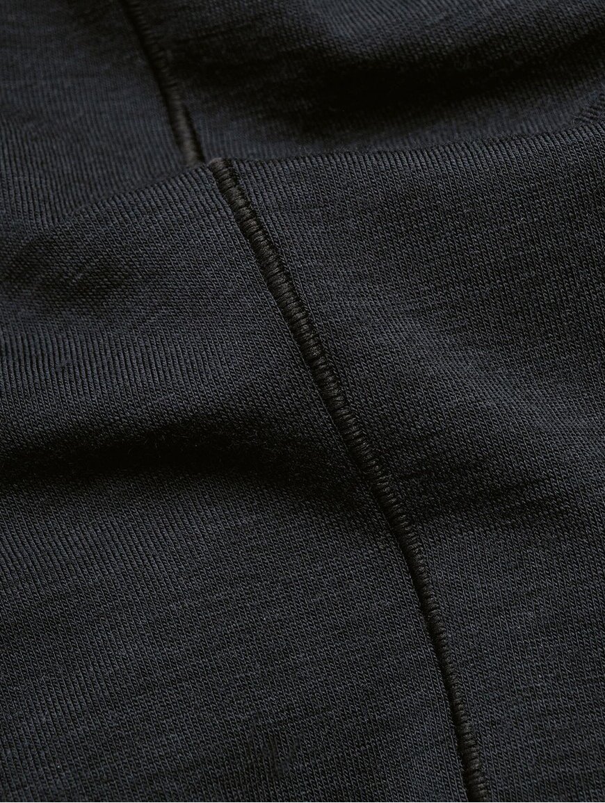 Материал Core Spun Merino имеет особую структуру: снаружи - мериносовая шерсть 18,5 микрон, а внутри - прочное нейлоновое волокно. Такая технология делает ткань теплой, эластичной и устойчивой к износу. Шерсть естественным образом регулирует температуру тела, отводит влагу и предотвращает появление запахов, сохраняя ощущение сухости во время активного движения.