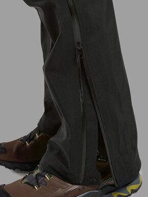Боковые молнии YKK AquaGuard длиной три четверти позволяют легко надевать брюки поверх обуви и открывать их для вентиляции. Эластичный пояс регулируется под нужную посадку, манжеты подстраиваются под разные типы обуви. Брюки имеют петли для подтяжек.