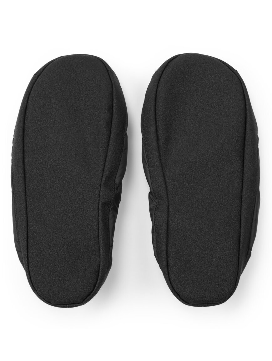 Подошва прочная, нескользкая и устойчивая к истиранию. Внутри есть съемная пенопластовая стелька, которая делает ходьбу более мягкой и позволяет легко ухаживать за обувью. Эластичный флисовый манжет плотно облегает лодыжку и удерживает тепло, а петля сзади помогает быстро надевать тапочки даже в палатке или спальнике.