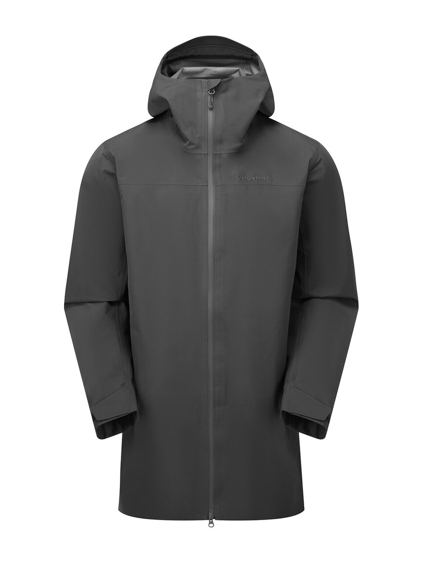 Montane Spirit Long Jacket M - длинная водонепроницаемая куртка для использования в дождливую и ветреную погоду. Она защищает от осадков, не сковывает движений и подходит как для города, так и для путешествий. Удлиненный крой хорошо прикрывает тело и не мешает двигаться.