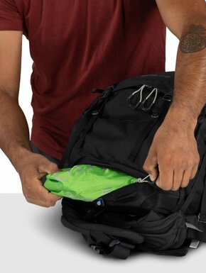 Модель оснащена вентилируемой спинкой AirScape™, которая обеспечивает плотное прилегание к телу и эффективную циркуляцию воздуха во время движения. Регулируемая длина спины позволяет точно подогнать посадку под пользователя, что улучшает распределение веса и снижает усталость. Встроенный дождевик придает уверенности в изменяющихся погодных условиях, а продуманная система карманов и креплений помогает организовать снаряжение. Прочные материалы из переработанного полиэстера обеспечивают долговечность и стойкость к износу. Благодаря этому рюкзак подходит для продолжительных походов, экспедиций и сложных маршрутов.