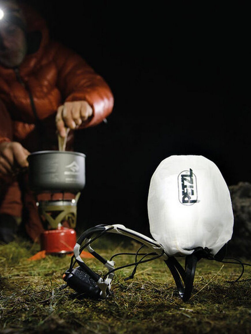 Специальный чехол для налобных фонарей PETZL, который защитит ваш фонарик от царапин во время переноски в рюкзаке. Но он фактически наполовину прозрачен и позволяет рассеивать свет, превращая ваш налобный фонарик в небольшую кемпинговую лампу, которую вы можете носить на голове или положить на любую поверхность. Чехол оснащен достаточно длинной стропой, которая закрывает сам чехол и позволяет его подвесить в палатке или ветке.