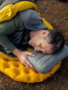Подушка разработана с использованием материалов, сочетающих легкость и долговечность, что позволяет брать его в длительные походы или путешествия. Каркас из воздушной камеры изготовлен из прочного TPU, хорошо противостоящего воздействию влаги и механической нагрузке. Подушка остается стабильной на коврике благодаря специальной системе крепления 3M™ PillowLock, которая не дает ей скользить во время сна. Такой дизайн обеспечивает баланс между комфортом и компактностью, позволяя принимать ее даже в минималистские походы.