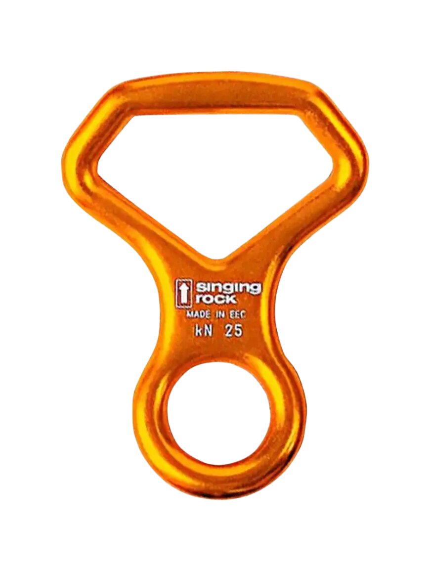 Спусковое устройство "восьмерка" с угловатым широким отверстием от бренда Singing Rock. Модель Figure 8 Bented предназначена для спуска по веревкам большого диаметра, а так же для организации страховки.
