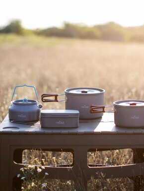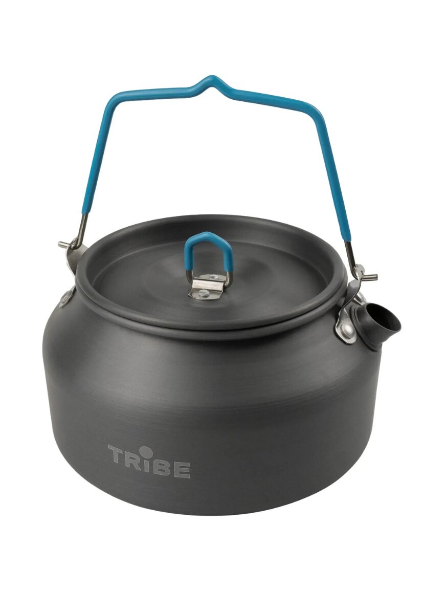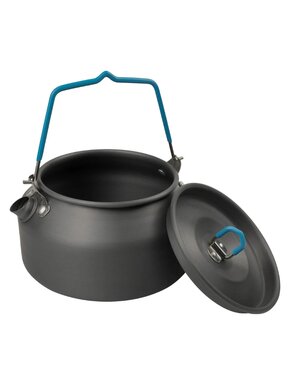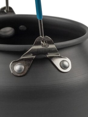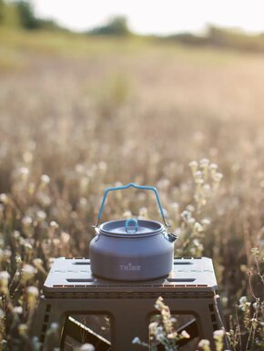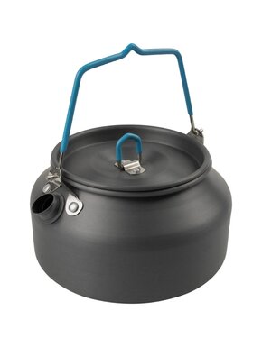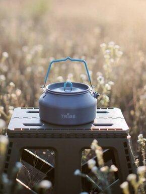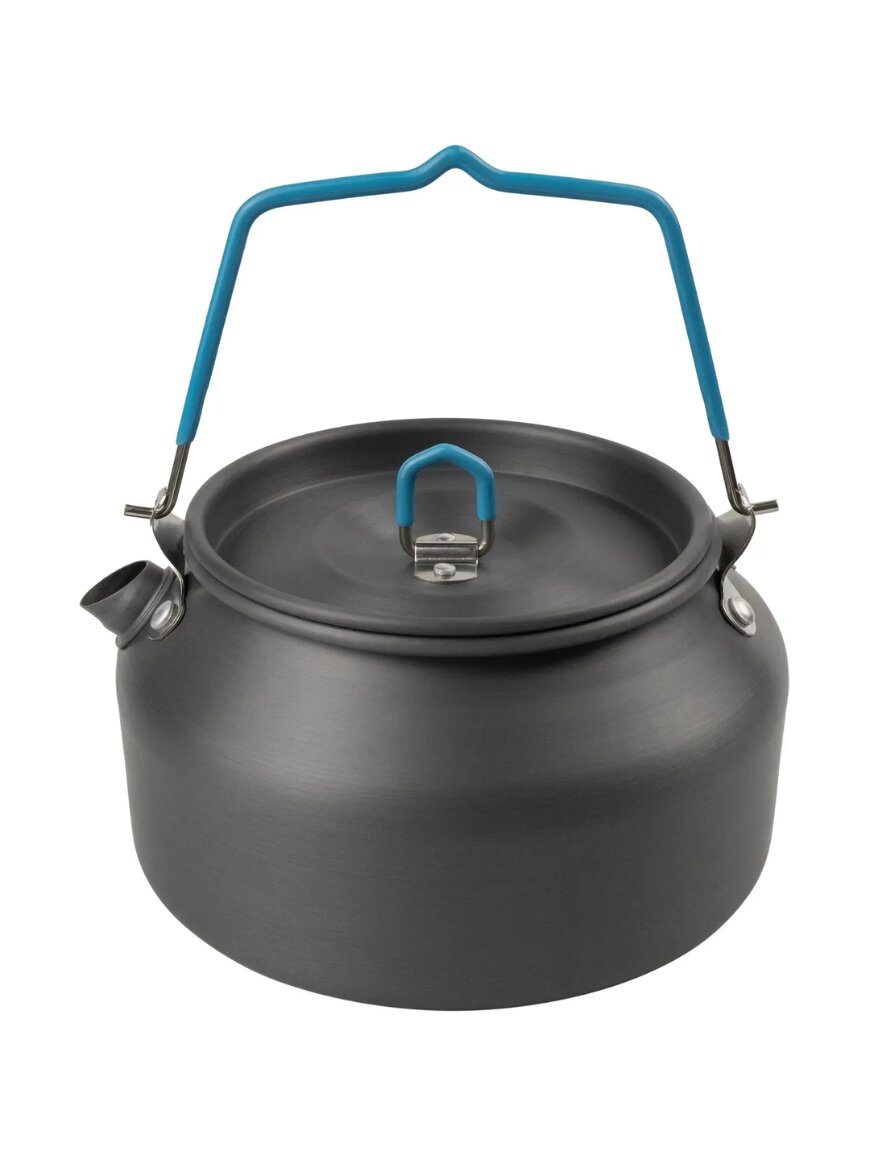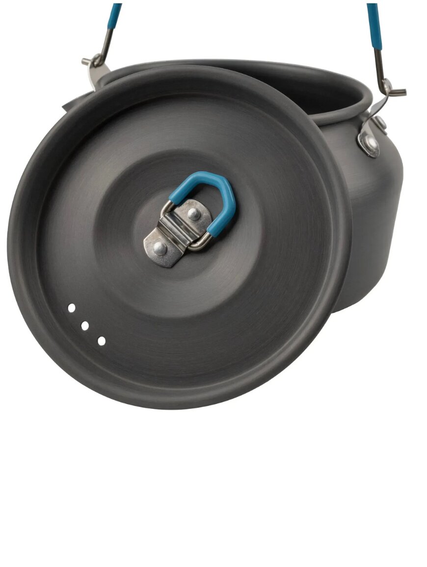 Легкий чайник объемом 1 л изготовлен из анодированного алюминия 5052, поэтому весит всего 170 г и быстро передает тепло, экономя топливо на газовой горелке или плите; широкий диск дна Ø 15 см ускоряет закипание, складная ручка с термостойким покрытием не обжигает пальцы, а низкий силуэт 85 мм позволяет безопасно стоять под ветрозащитным экраном. В комплекте вместительный сетчатый чехол для перевозки, поэтому чайник остается чистым и защищенным от царапин в рюкзаке.
