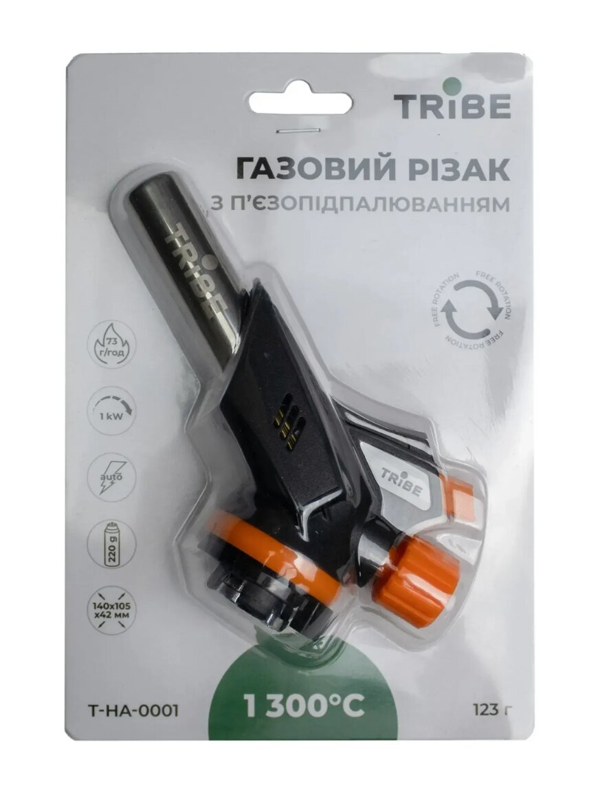 Газовый резак от Tribe удобно использовать для разжигания древесного угля для барбекю, приготовления пищи, несложной сварки медных труб и работы с трубами ПВХ, отогревания замерзших труб. Резак снабжен пьезоподжигом, имеет точную регулировку пламени.